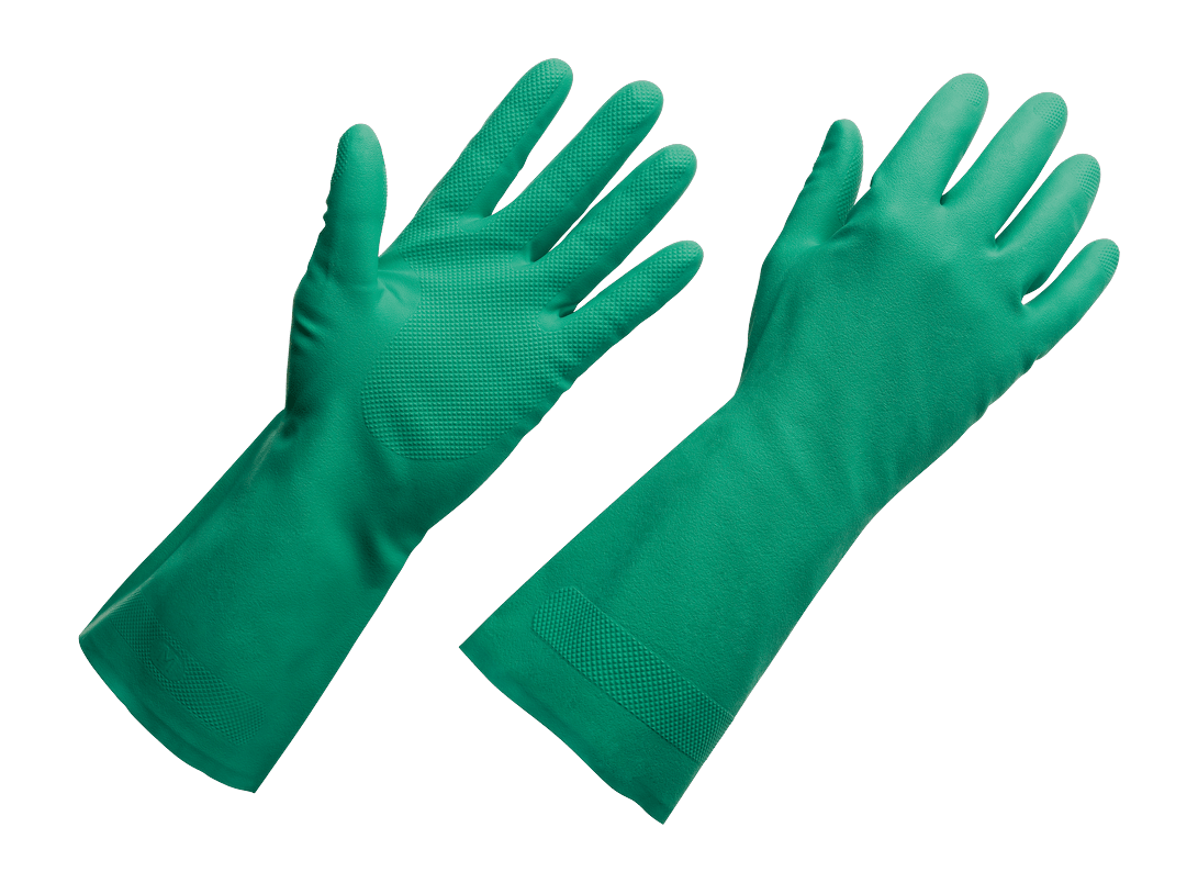 Fabricada em borracha nitrílica de alta resistência, é impermeável, flexível e durável, protegendo as mãos contra detergentes, solventes e agentes químicos comuns na limpeza profissional.